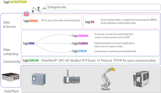 LOGIIOT is a software platform that allows you to perform simple data collection and visualization, like other ready-to-use data collection software, and to develop custom shop-floor applications within a single system.